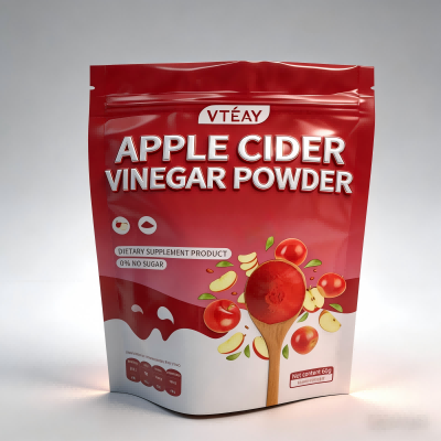 مصنوعة من مادة PET/الألومنيوم/PE الملائمة للطعام، تضمن الحقيبة بقاء مسحوق خل التفاح طازجًا وقويًا لفترة طويلة. إن حاجز الأكسجين الممتاز للمادة، ومقاومتها للرطوبة، وخصائص حجب الضوء تحمي المكونات النشطة، وتحافظ على جودة المنتج.