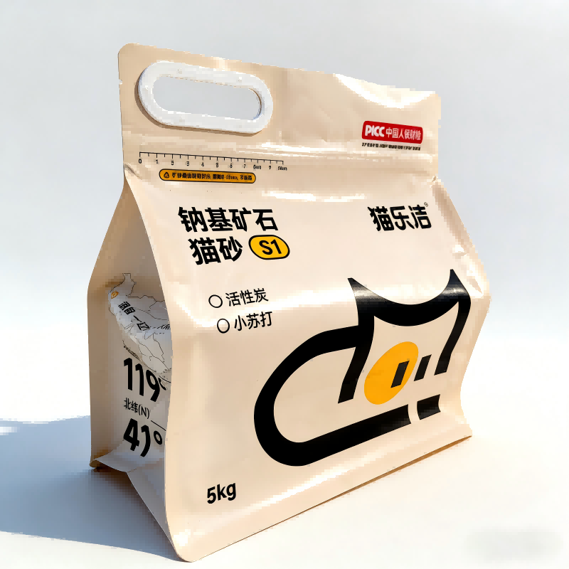 يحافظ هيكل الغلق ذو الجوانب الثمانية على ثبات الحقيبة واستقامتها، مما يجعلها مثالية لعرض الرفوف البارزة. كما أنه يسهل التراص المستقر والتخزين المريح. يوفر المقبض المزود بسحاب إغلاقًا آمنًا وموثوقًا، مما يمنع الرطوبة والغبار من الدخول حتى مع الفتح والإغلاق المتكرر. علاوة على ذلك، يتيح تصميم المقبض البلاستيكي المقوى سهولة التعامل مع 5 كجم من فضلات القطط، مما يعزز تجربة المستخدم.